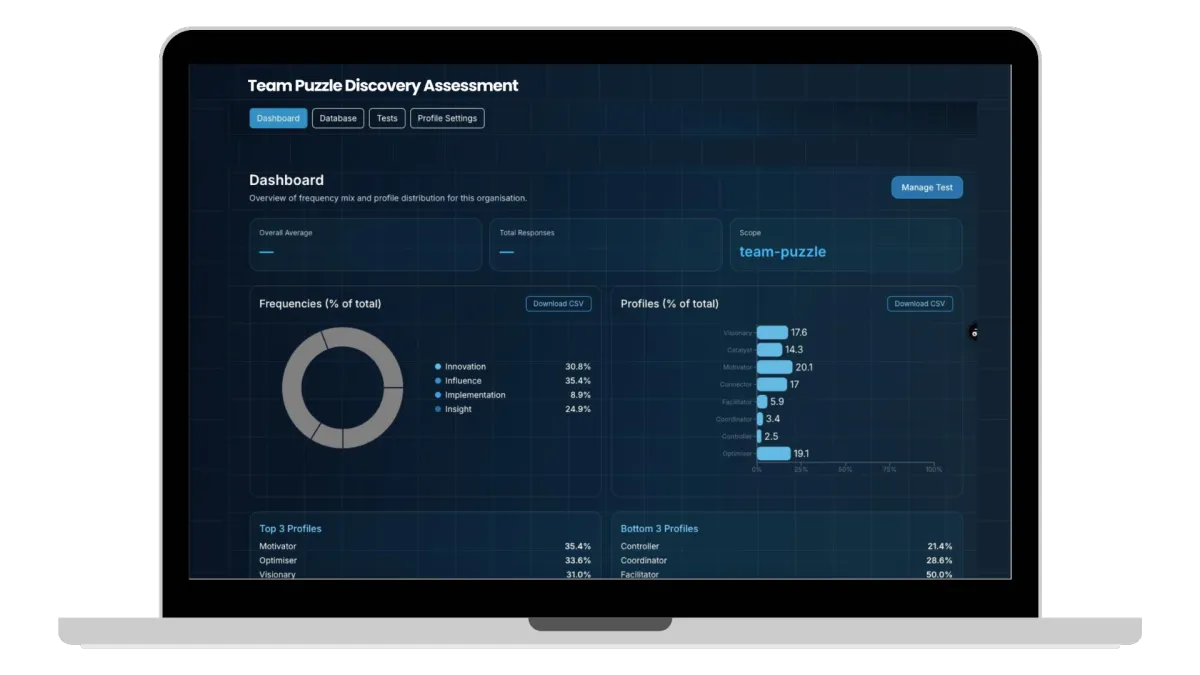 ProfileTest.ai provides forward-looking signals: who’s about to burn out, which team will struggle, how a candidate will perform in 90 days. Instead of vendor templates, we let you customise your own system in your language, for your context. And because you own the IP, there’s no risk of your clients being remarketed to by someone else